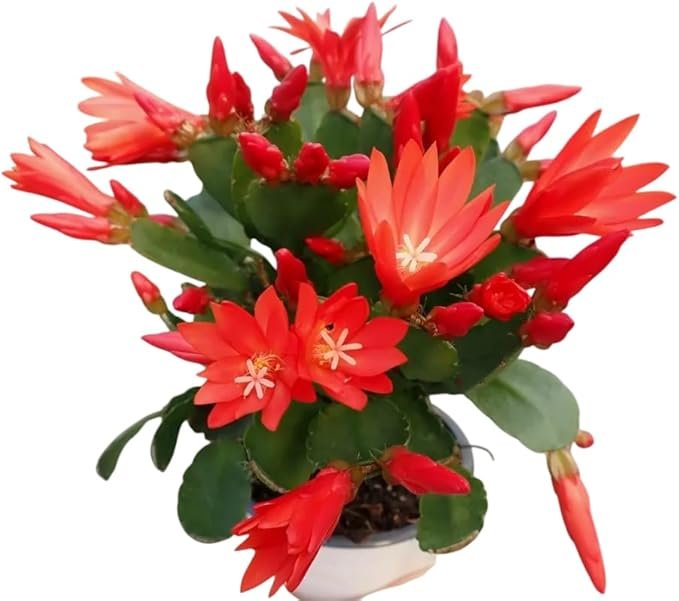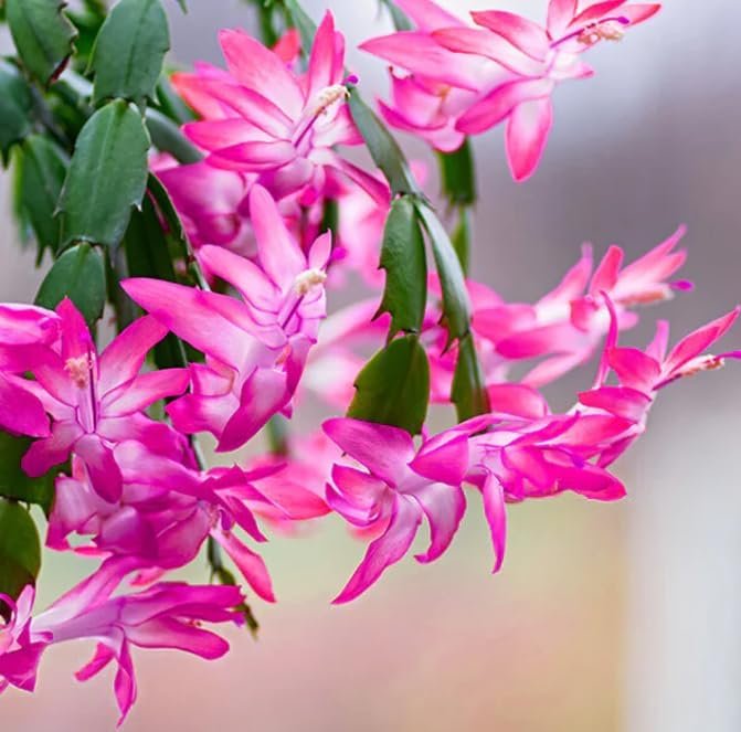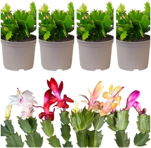 4 Assorted Thanksgiving Christmas Cactus Plants Live Holiday Cactus Flowers Schlumbergera Succulent Plants Multi-stem Succulent Plants 5-7 Inch Tall 3 Inch Pot. Grow Indoor or Oudoor. Easy to grow.