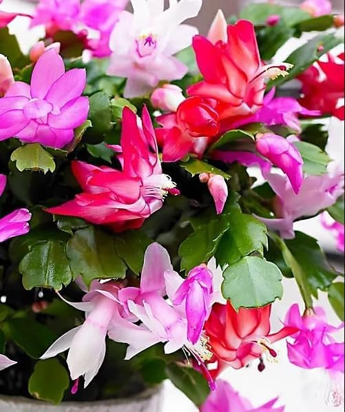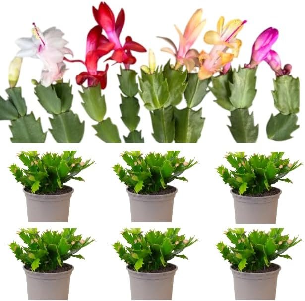 6 Assorted Thanksgiving Christmas Cactus Plants Live Holiday Cactus Flowers Schlumbergera Succulent Plants Multi-stem Succulent Plants 5-7 Inch Tall 3 Inch Pot. Grow Indoor or Oudoor. Easy to grow.